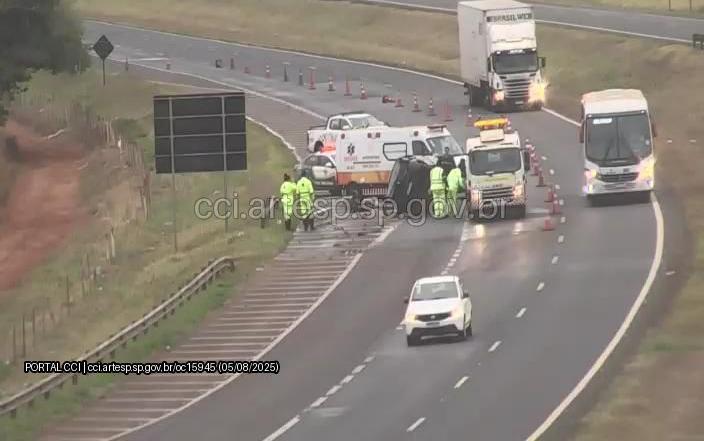 Segundo informações da Artesp (Agência de Transporte do Estado de São Paulo), um veículo Sandero, com dois ocupantes, trafegava pela rodovia no sentido norte quando o condutor cochilou ao volante e desviou o carro para o canteiro central, vindo a capotar na faixa contrária da via.