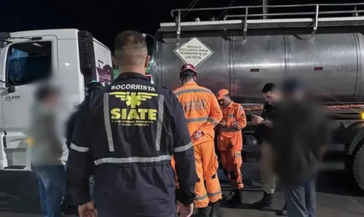 Segundo informações do Corpo de Bombeiros, um caminhão carregado com ração animal colidiu na traseira de um caminhão leiteiro que estava vazio. Com o impacto, o caminhão de ração saiu da pista, perdeu o controle, tombou e caiu em um barranco de aproximadamente 50 metros às margens da via.