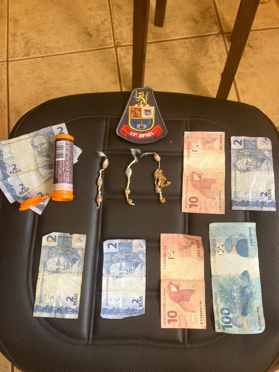 Segundo informações da Polícia Militar, a equipe formada pelo subtenente Bueno, cabo Matheus e soldado Freitas se deparou com algumas pessoas em atitude suspeita, próximas a um campo de futebol. Os policiais realizaram a abordagem. Com o adolescente, foram encontradas 19 pedras de crack e R$ 138,00 em dinheiro.