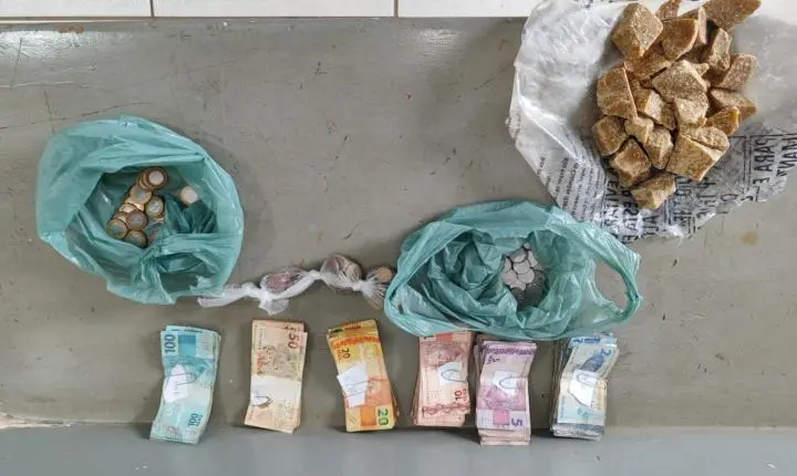Voltando ao local, o cão localizou no interior de um buraco tampado com capim, uma sacola contendo 26 pedras de crack e R$3.198,65 em dinheiro. As drogas e as notas foram apreendidas e encaminhada para Dise (Delegacia de Investigações sobre Entorpecentes).