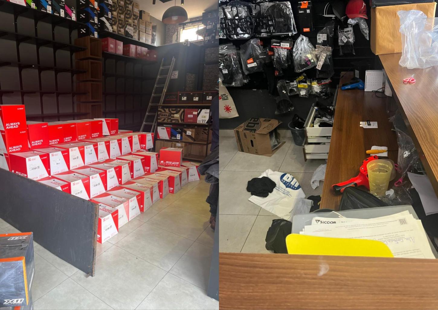 Os bandidos levaram cerca de 150 capacetes avaliados em mais de R$ 2 mil e 50 jaquetas. De acordo com o proprietário da loja, os prejuízos passam de R$250 mil.