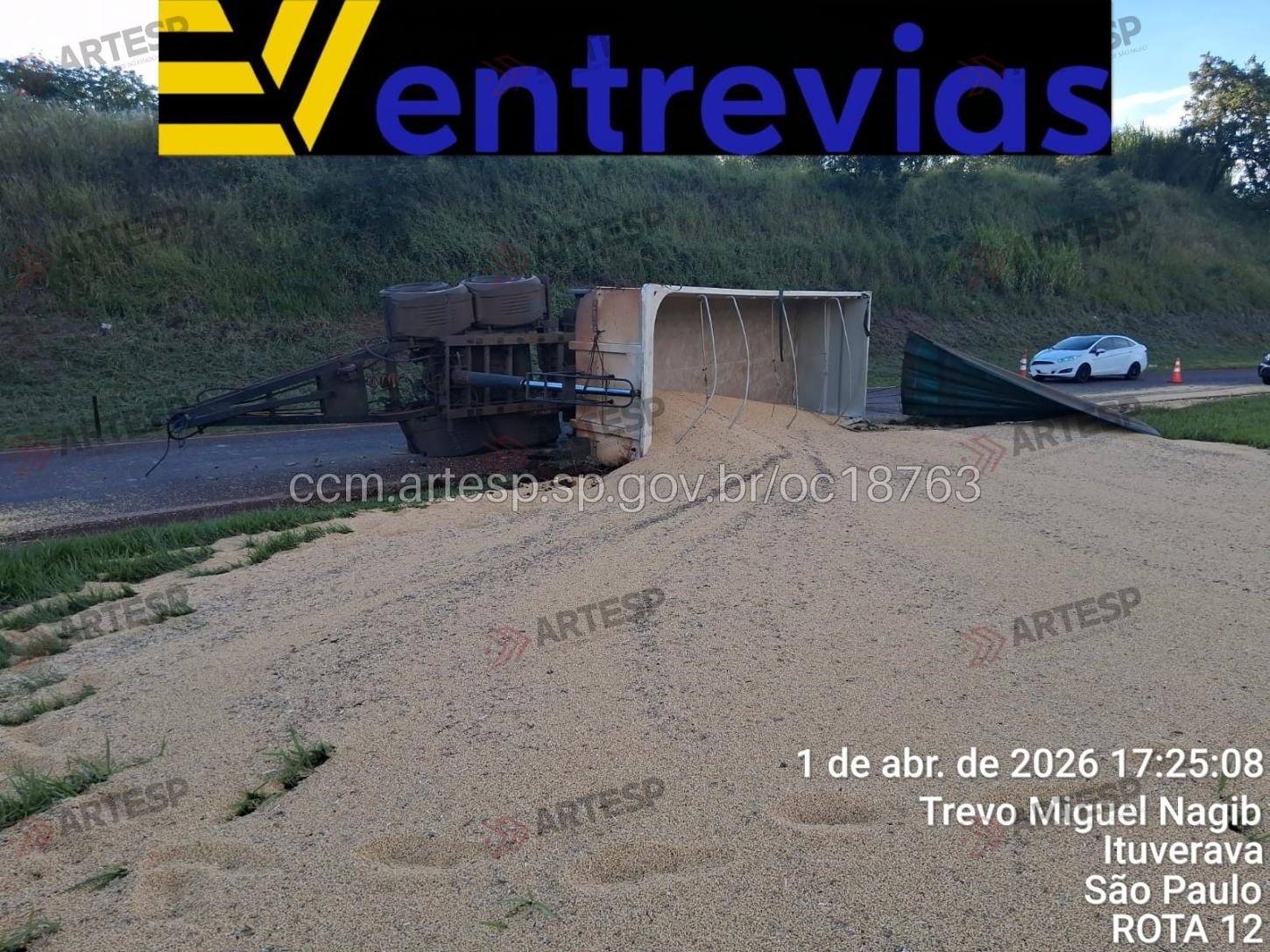 O motorista do bitrem não sofreu ferimentos, e a carga ficou espalhada pela via. A rodovia ficou parcialmente interditada durante a noite para a remoção do veículo e a limpeza da pista.