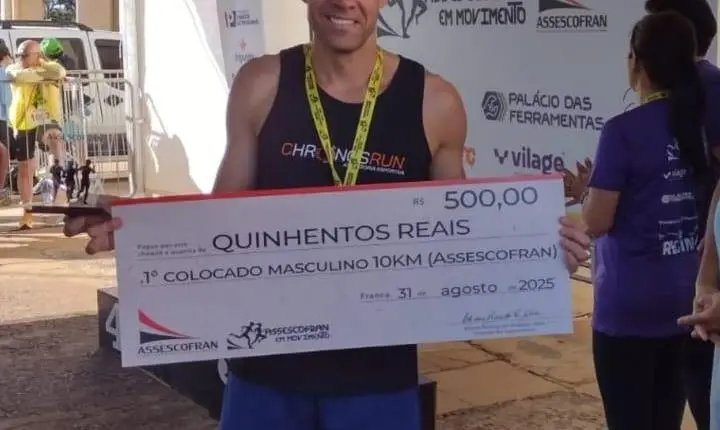 Na manhã deste domingo, 31, o cabo Glauco Biagi, da Companhia de Força Tática do 15° Batalhão da Polícia Militar de Franca, conquistou o primeiro lugar entre os associados da Sportbro na categoria 10 km da corrida Assescofran em Movimento.