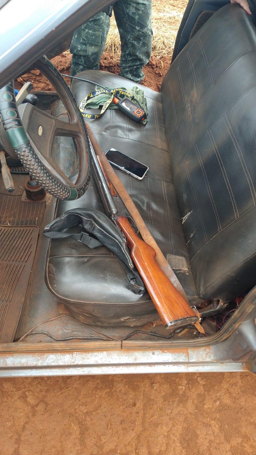 Segundo informações da Polícia Militar Ambiental, a equipe formada pelo sargento Tiago, cabo Oliveira e soldado Satoshi avistou um veículo em uma estrada rural chamada Marolo, ocupado pelo condutor e vários cães da raça americano na carroceria. Durante a abordagem pessoal, nada de ilícito foi localizado. No entanto, ao realizarem a vistoria veicular, os policiais encontraram uma espingarda calibre 20 e 11 munições intactas do mesmo calibre.