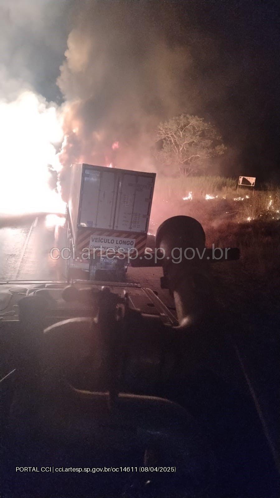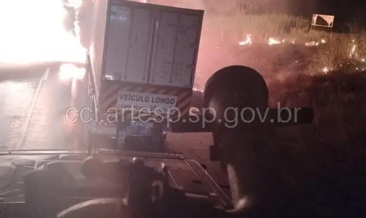 Na noite de terça-feira, 8, um caminhão bitrem pegou fogo no quilômetro 430 da rodovia Anhanguera, no município de Aramina, na região de Franca.