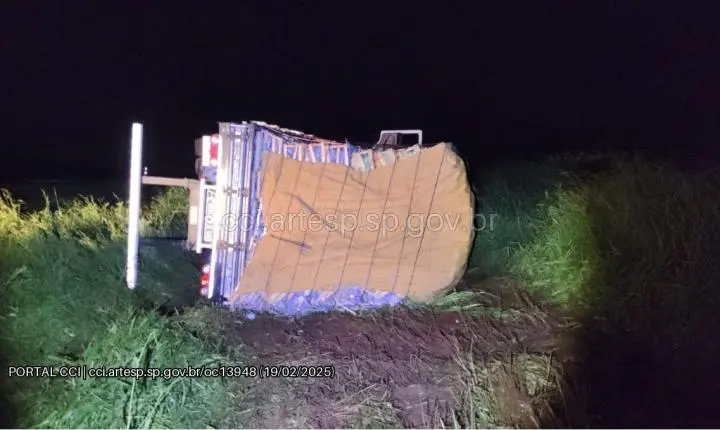 Na madrugada desta quarta-feira, 19, um caminhão que transportava uma carga de repolho tombou no quilômetro 425, sentido norte, da rodovia Anhanguera, no município de Aramina, na região de Franca.