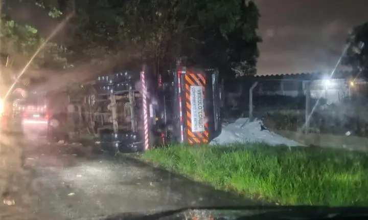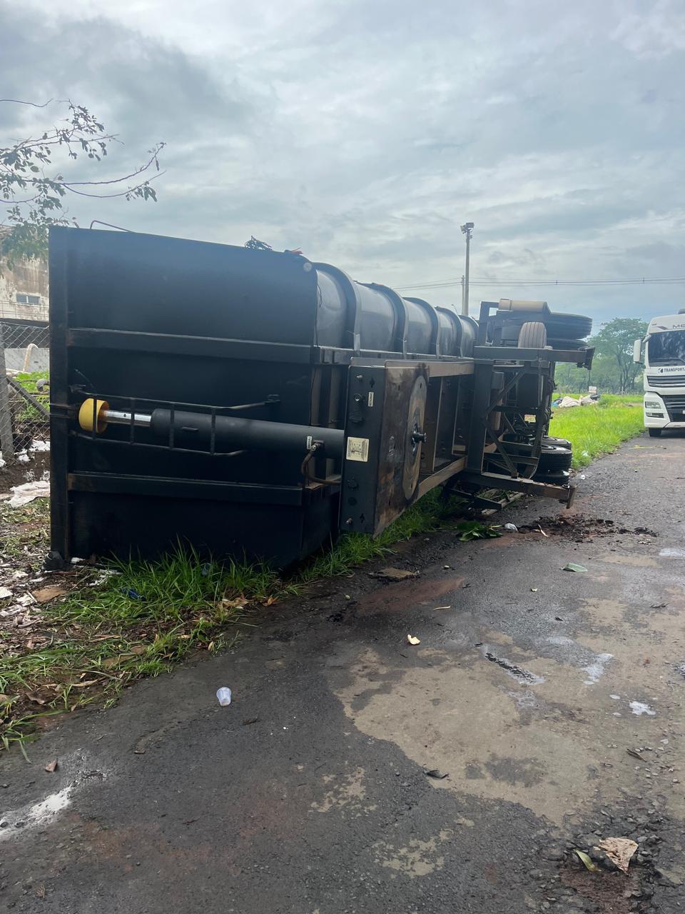 Segundo informações apuradas, o tombamento ocorreu após o asfalto ceder no momento que o motorista tentava desengatar a carreta. Devido ao acidente, parte da estrutura ficou caída sobre a calçada. Um enorme buraco se abriu no asfaltado e por sorte ninguém ficou ferido.