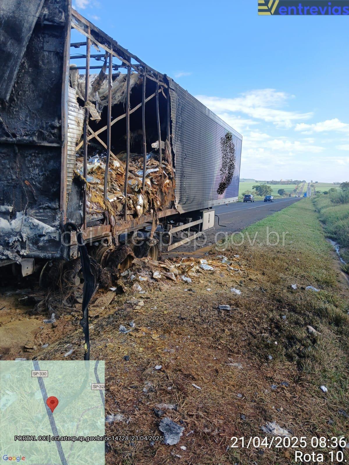 Uma carreta que transportava matérias-primas para a produção de medicamentos pegou fogo no quilômetro 337 da rodovia Anhanguera, no município de Jardinópolis.