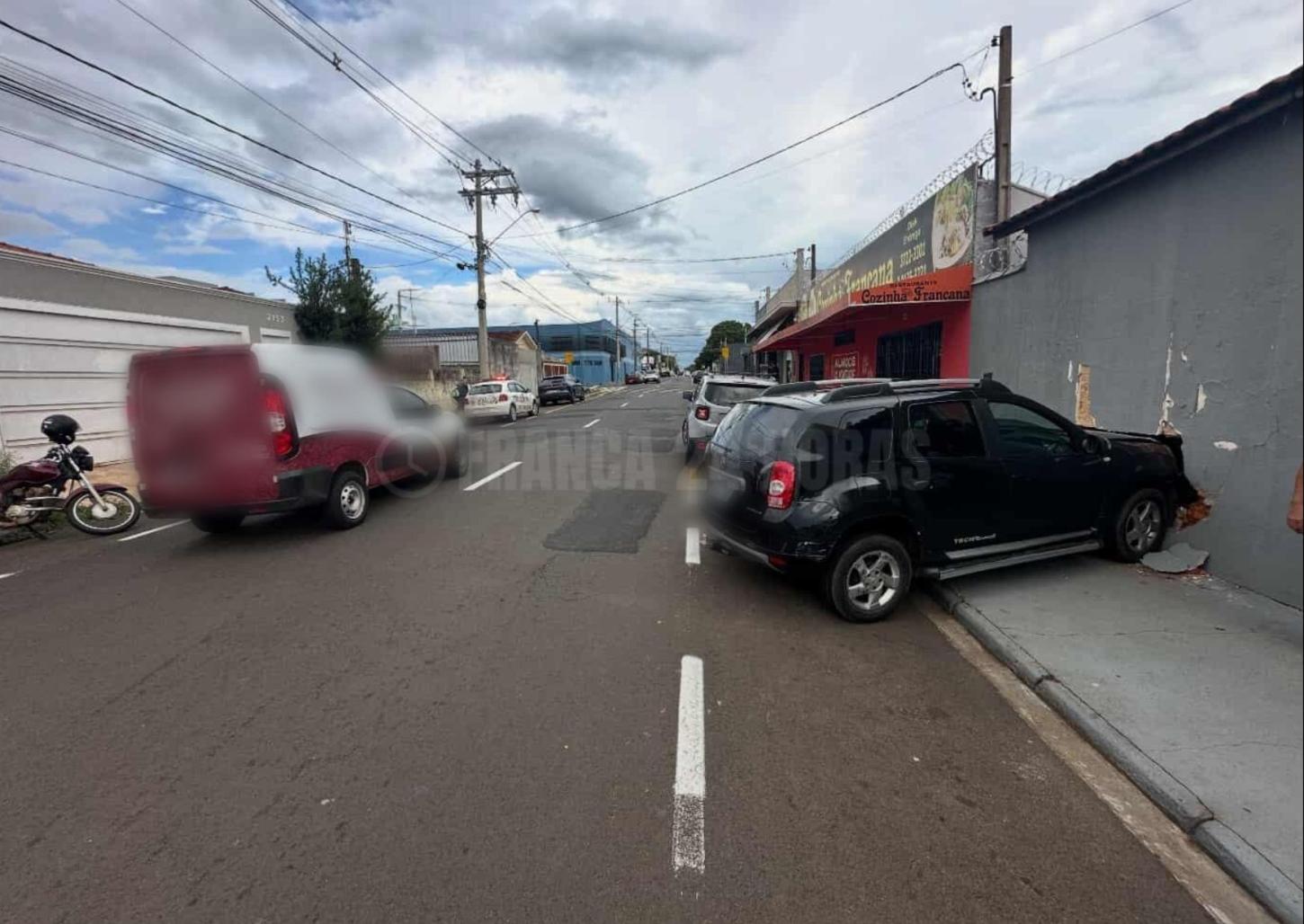 Segundo um internauta do Portal Franca 24 Horas, um carro Palio teria avançado o sinal de parada obrigatória e atingido um veículo Daster, que com o impacto, a condutora perdeu o controle da direção, subiu na calçada, bateu e derrubou parte do muro de um imóvel.
