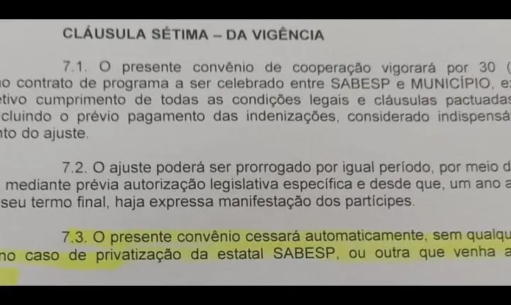 Em Franca, a Sabesp atua desde 1977. Em 2007, o contrato com a empresa foi renovado por mais 30 anos. A cláusula sétima é clara e objetiva em relação ao rompimento do contrato. Segundo o documento, em caso de privatização da Sabesp, o convênio cessará automaticamente sem qualquer ônus para o município, ou outra empresa que venha sucedê-la.