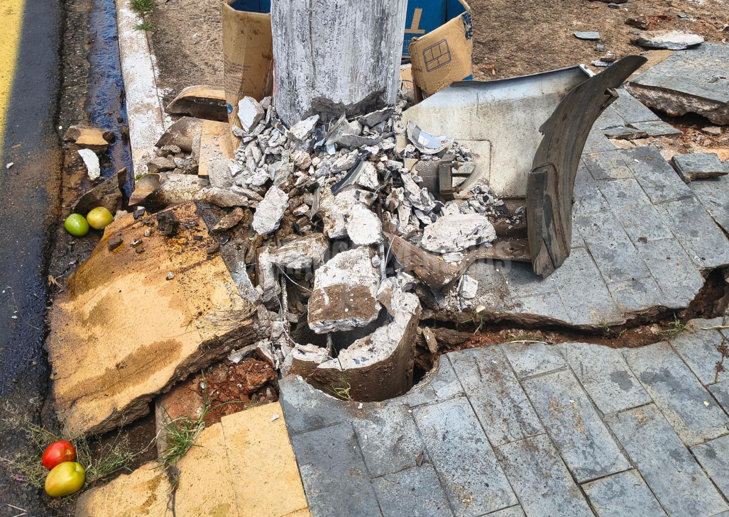 O motorista disse que o acidente aconteceu porque a direção travou, provavelmente devido a um problema mecânico. Ele não ficou ferido. A frente do automóvel ficou danificada e o poste terá que ser trocado.