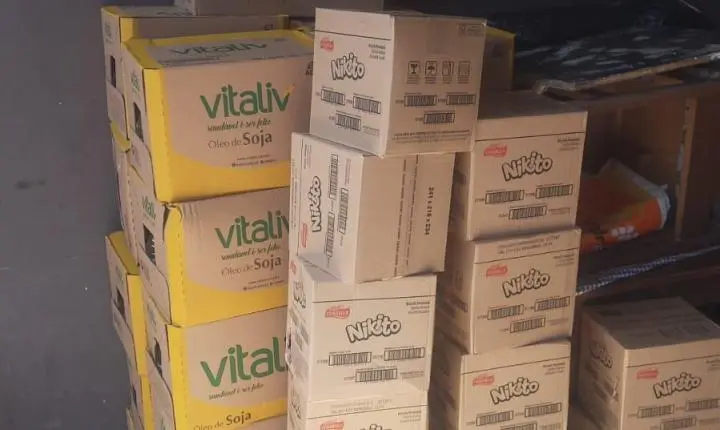 Dentro do imóvel, foram encontradas diversas mercadorias, como caixas de óleo, sabão em pó, biscoitos recheados e outros itens. Questionado sobre a origem dos produtos, o homem não conseguiu comprovar sua legalidade.
