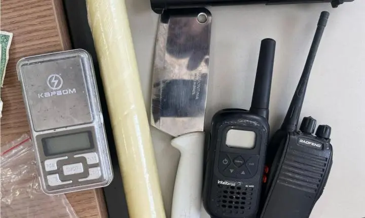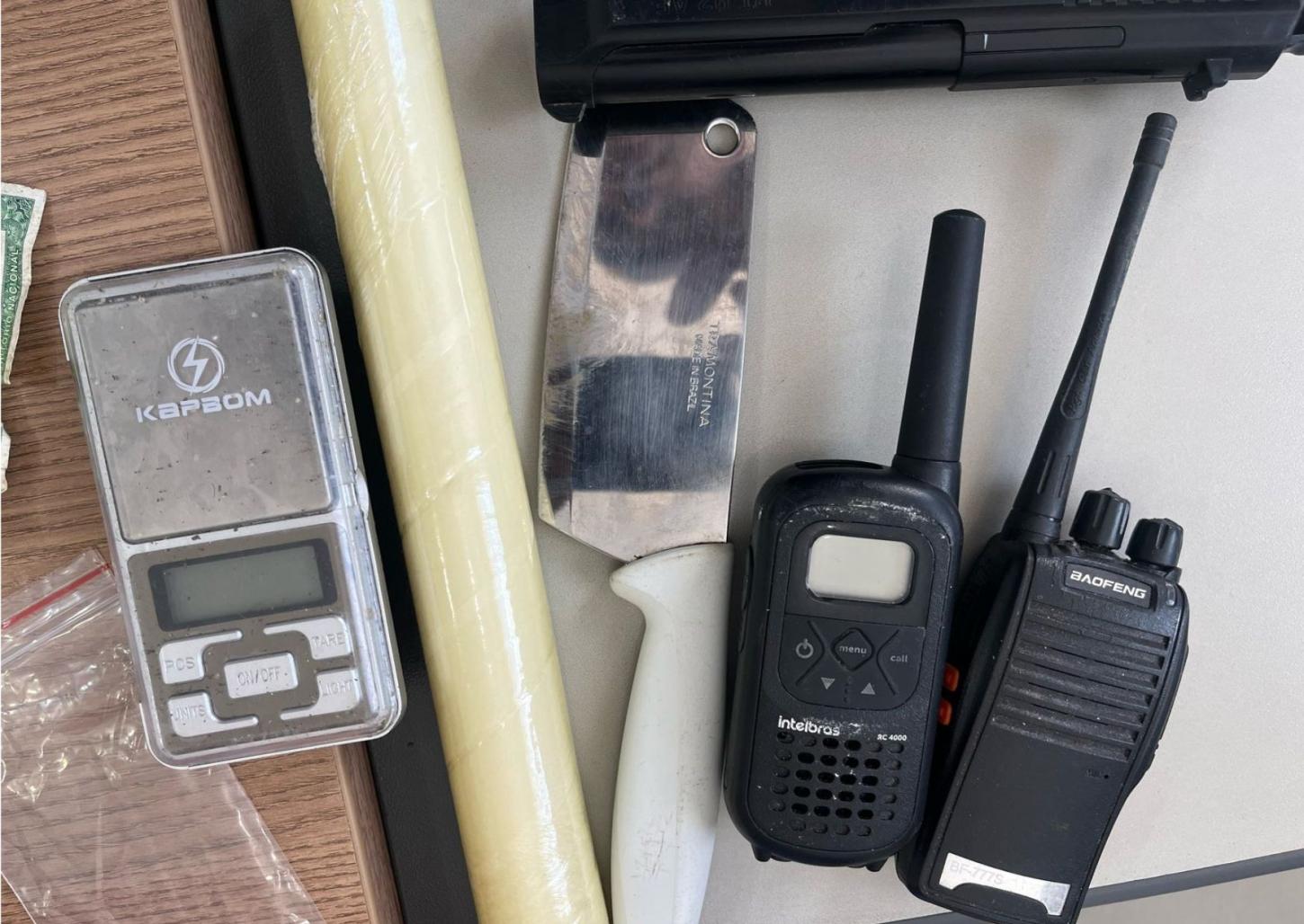 Ao entrar na residência com a autorização da mãe do detido, os militares encontraram 30 gramas de crack, simulacro de pistola, porções de maconha, maleta de uma arma, várias porções de maconha embaladas para entrega, balança de precisão e um plástico filme. O traficante foi conduzido até a DISE (Delegacia de Investigações sobre Entorpecentes), onde foi autuado em flagrante e recolhido na cadeia.