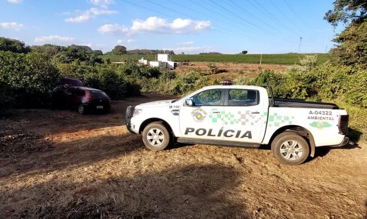 Na terça-feira, 22, a Polícia Militar Ambiental localizou um veículo abandonado por um homem desconhecido em uma plantação de café, às margens da rodovia João Traficante, sentido ao município de Ibiraci (MG).