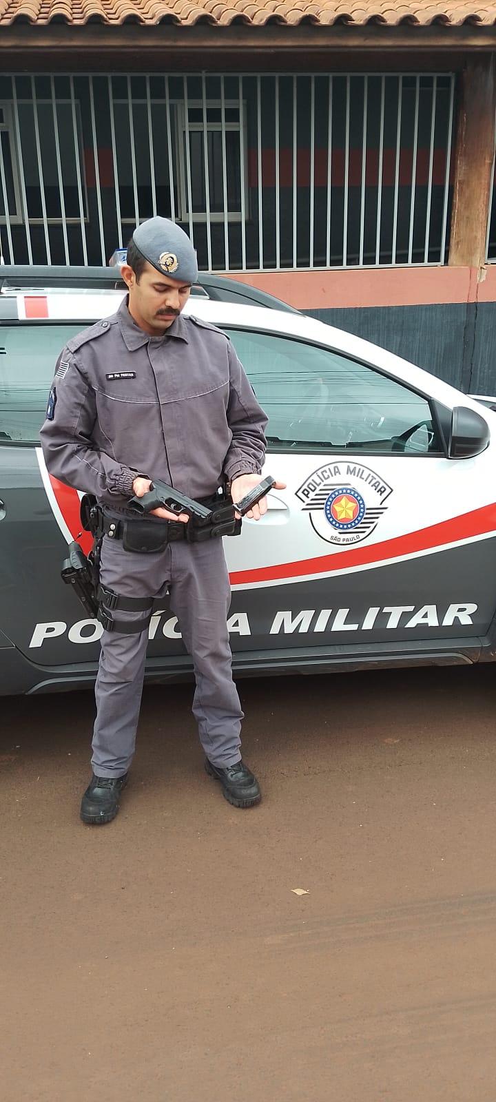 Segundo informações da Polícia Militar, a equipe formada pelo cabo Almeida e pelo soldado Elvis foi ao local. Ao perceber a presença da viatura, o homem tentou fugir correndo. No entanto, ao passar pela rua São Sebastião, ele deixou cair uma pistola no chão. O fugitivo foi abordado na rua Coronel Garcia Lopes, após tropeçar e cair.