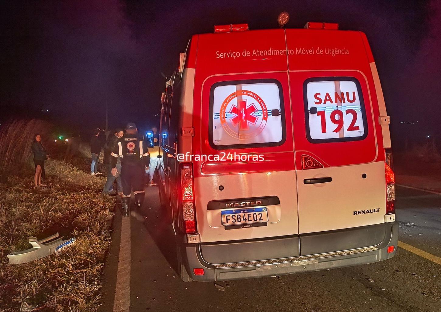 Com o impacto, o Corsa saiu da pista e só parou na vegetação às margens da rodovia. A moto ficou caída na via. João Victor morreu na hora. Já o amigo foi socorrido para a Santa Casa de Franca consciente. Dois homens que estavam no carro abandonaram o veículo e fugiram a pé.
