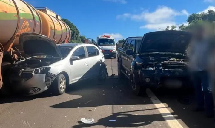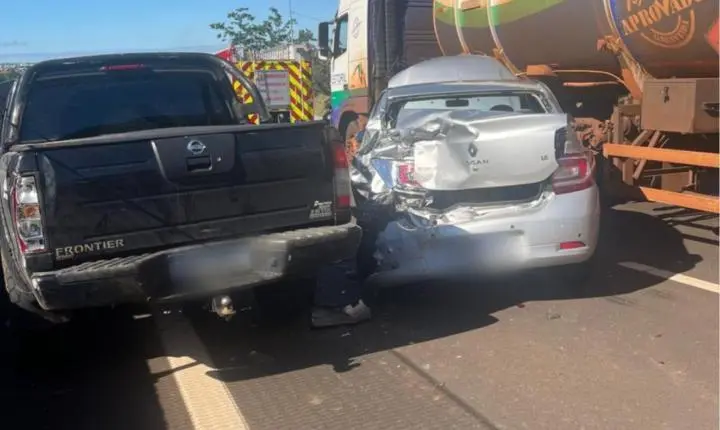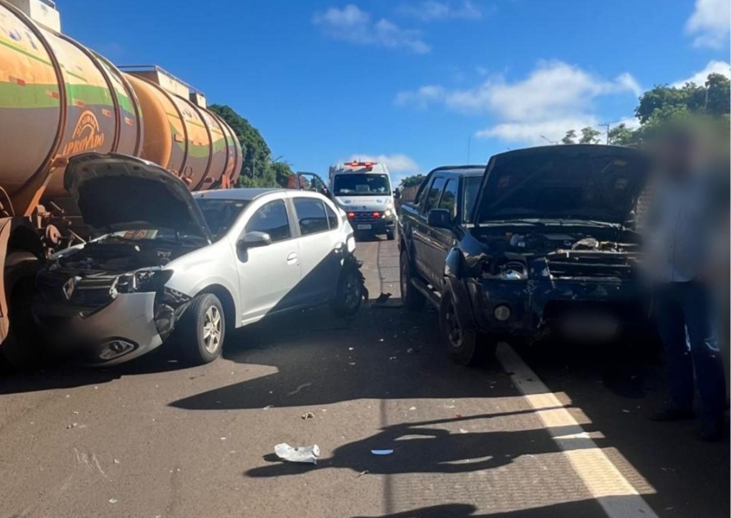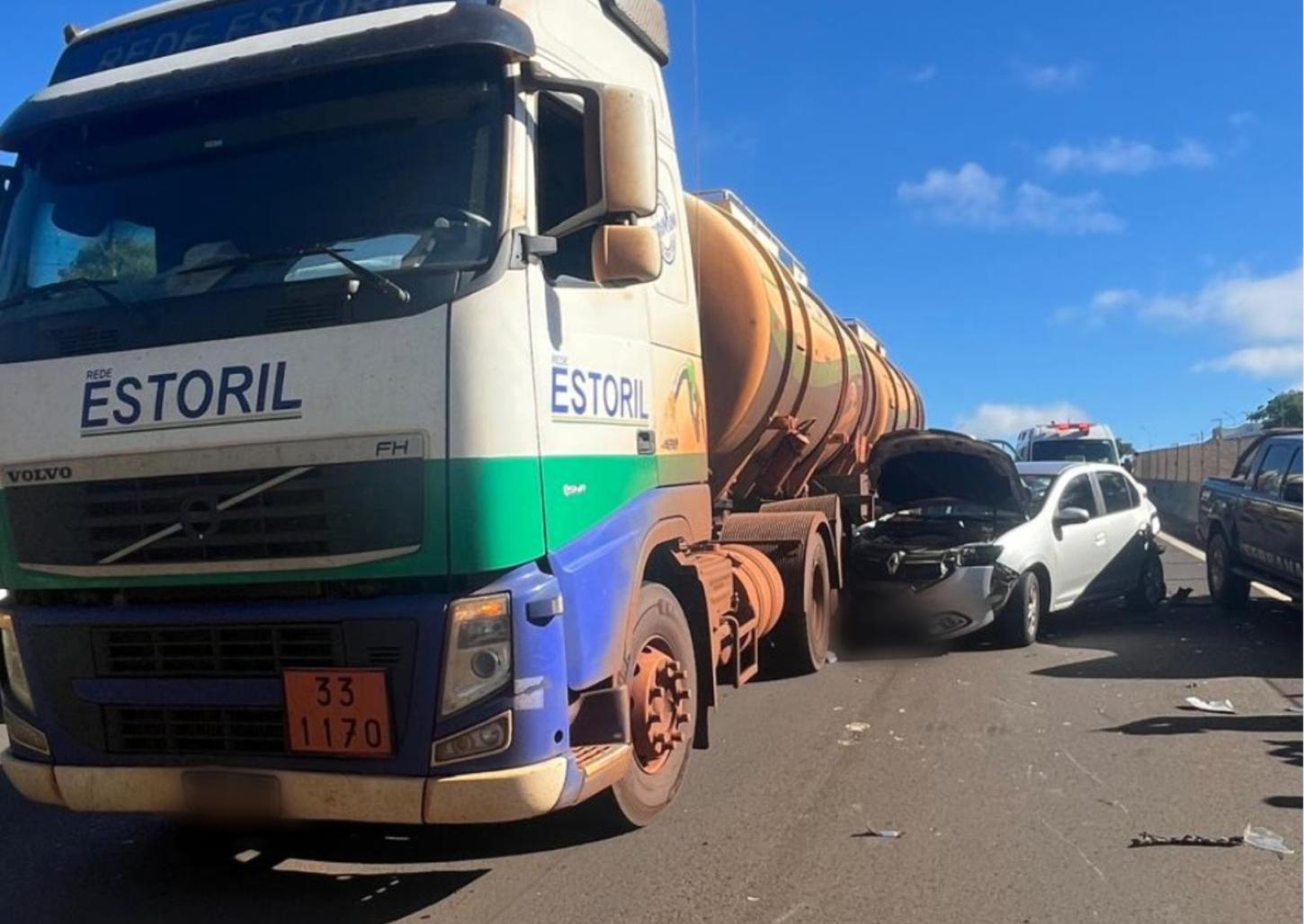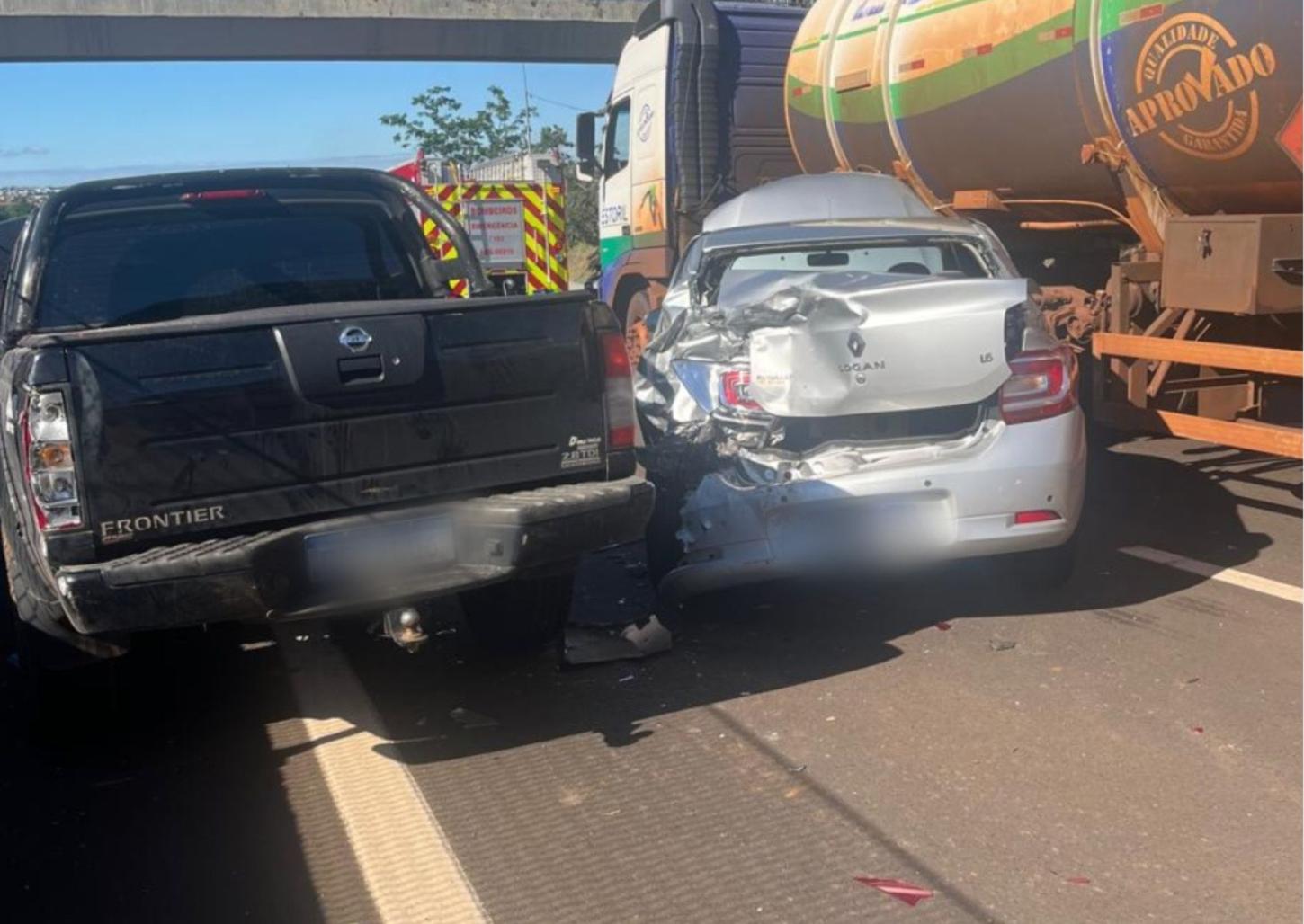 A poucos metros do local, uma caminhonete bateu na traseira de um veículo Renault que estava parado na pista devido ao primeiro acidente. Com o impacto da batida, o Renault atingiu um carro que estava à frente, uma motociclista e por pouco não parou embaixo de um caminhão carregado com combustível.
