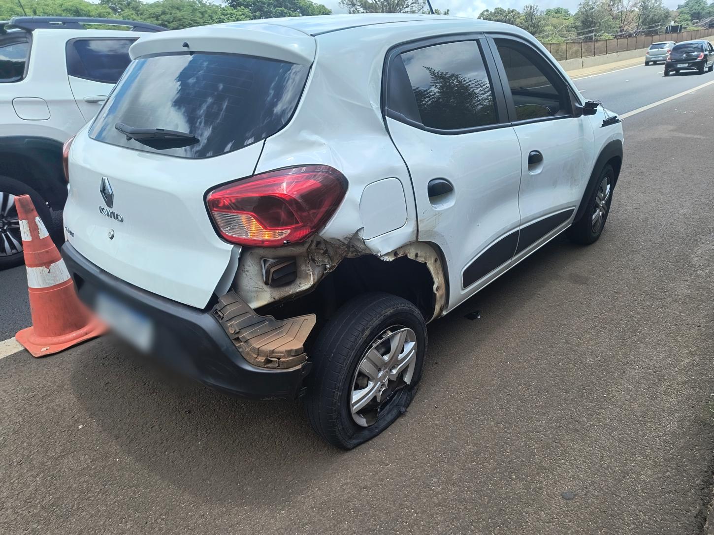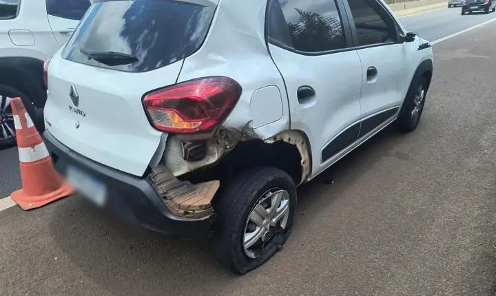 Segundo informações apuradas no local, um veículo Kwid usado por um motorista de aplicativo estava parado na pista, quando foi atingido violentamente na lateral traseira direita por uma moto GC Titan.