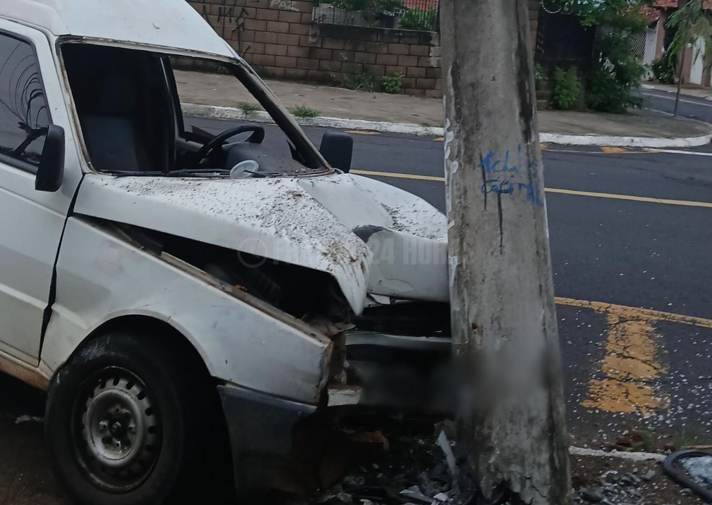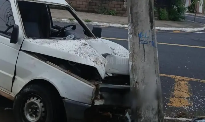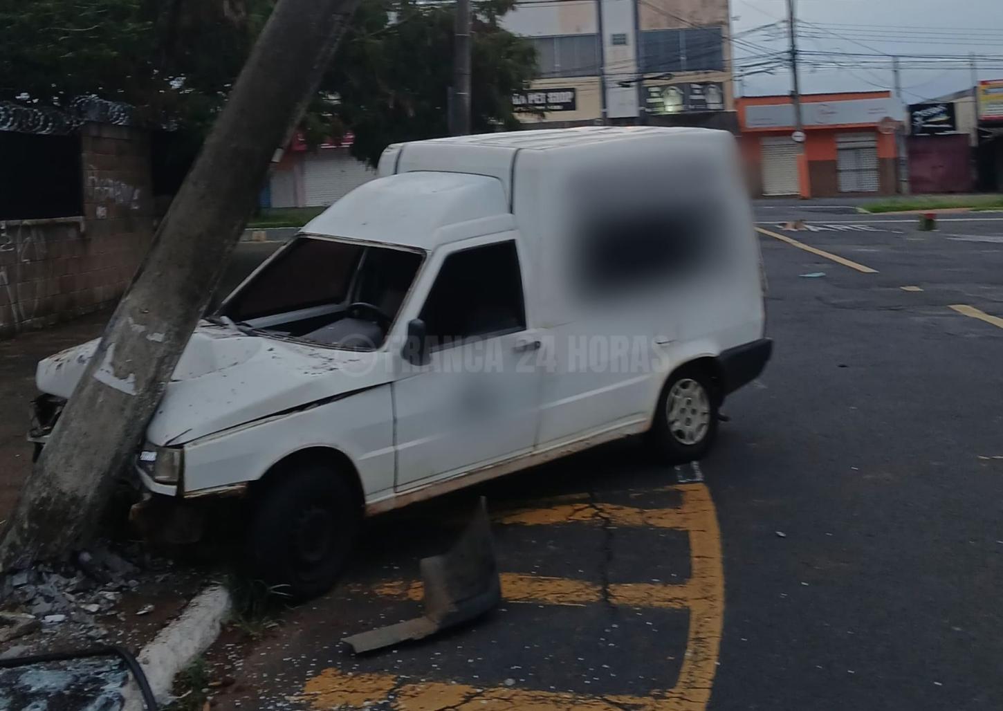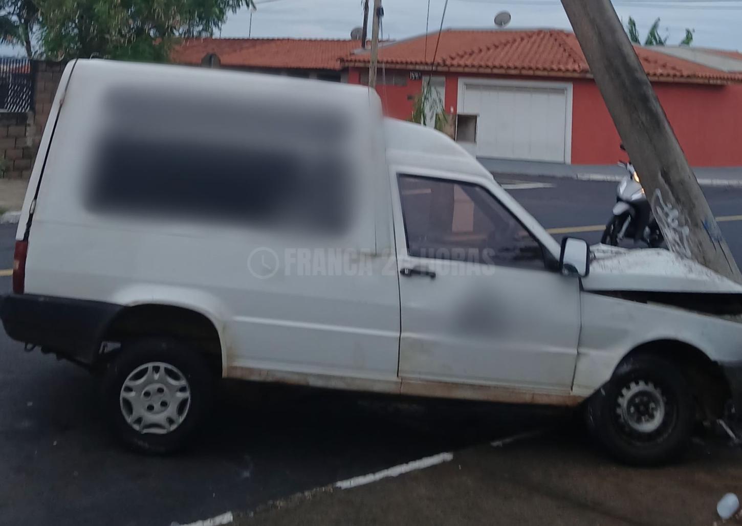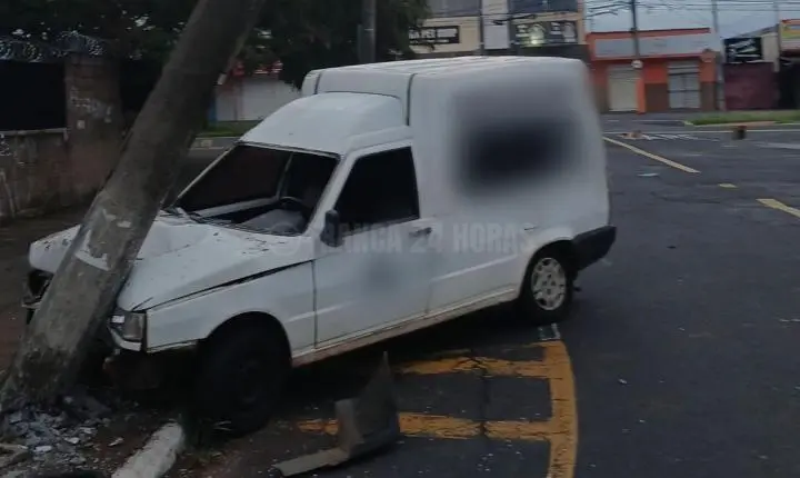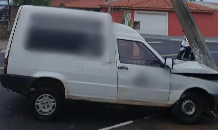 Neste sábado, 13, uma pessoa que trafegava pela avenida Olga Ferraro Drigo, no Parque Vicente Leporace, na zona norte de Franca, subiu na calçada e bateu o veículo Fiorino que dirigia em um poste.