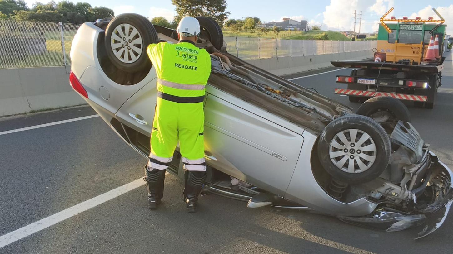 No primeiro acidente, um homem, de 25 anos, que transitava sentido Cristais Paulista em um carro HB20 perdeu o controle da direção por motivos a serem apurados, bateu na mureta de proteção e capotou. Ele e o filho, de 3 anos, sofreram ferimentos leves e foram socorridos.