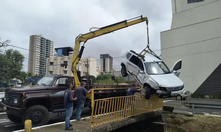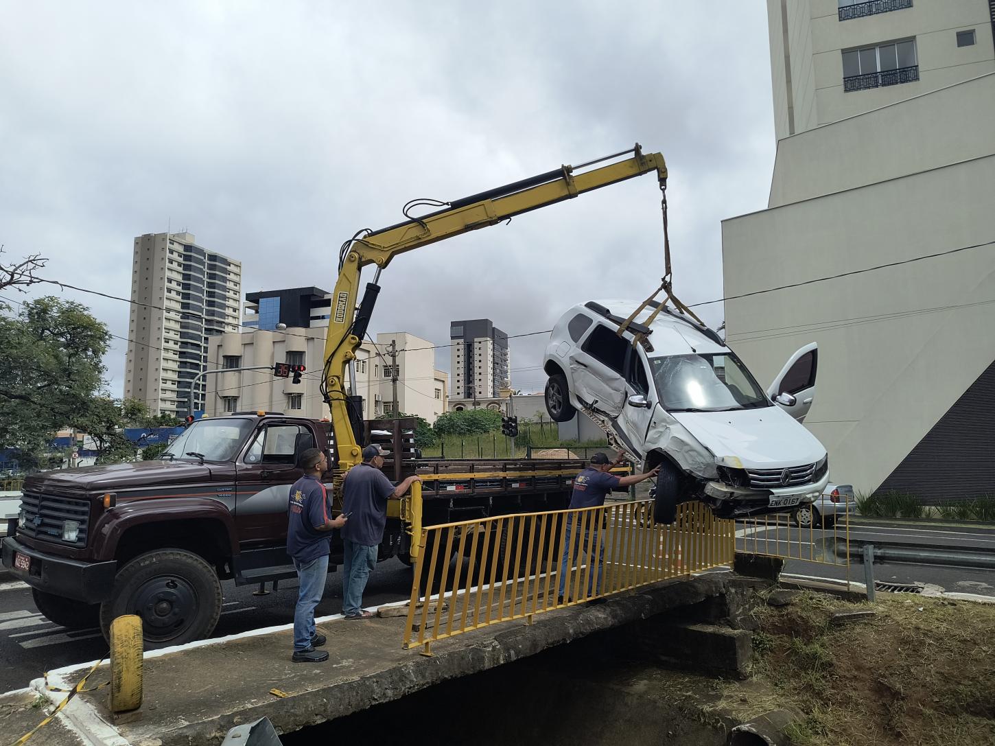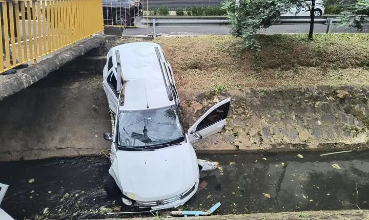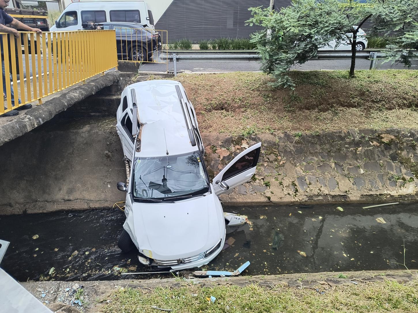 Na madrugada desta quinta-feira, 16, um veículo Duster, caiu no córrego Cubatão, no bairro São José, em Franca.