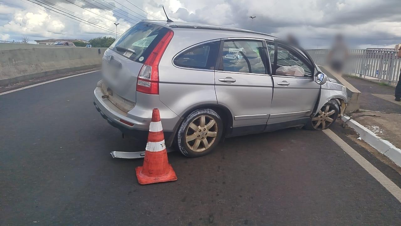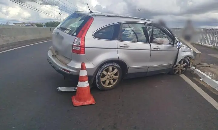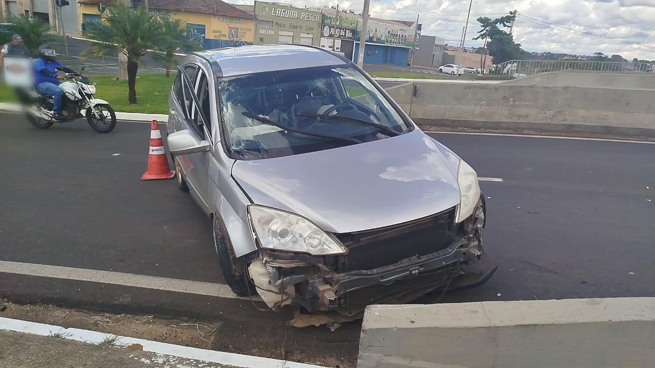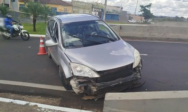 Na tarde desta quinta-feira, 2, uma motorista que seguia pela rua Major Moura Mattos, sentido bairro Estação, bateu o carro que dirigia na mureta de proteção do pontilhão da Vila São Sebastião.