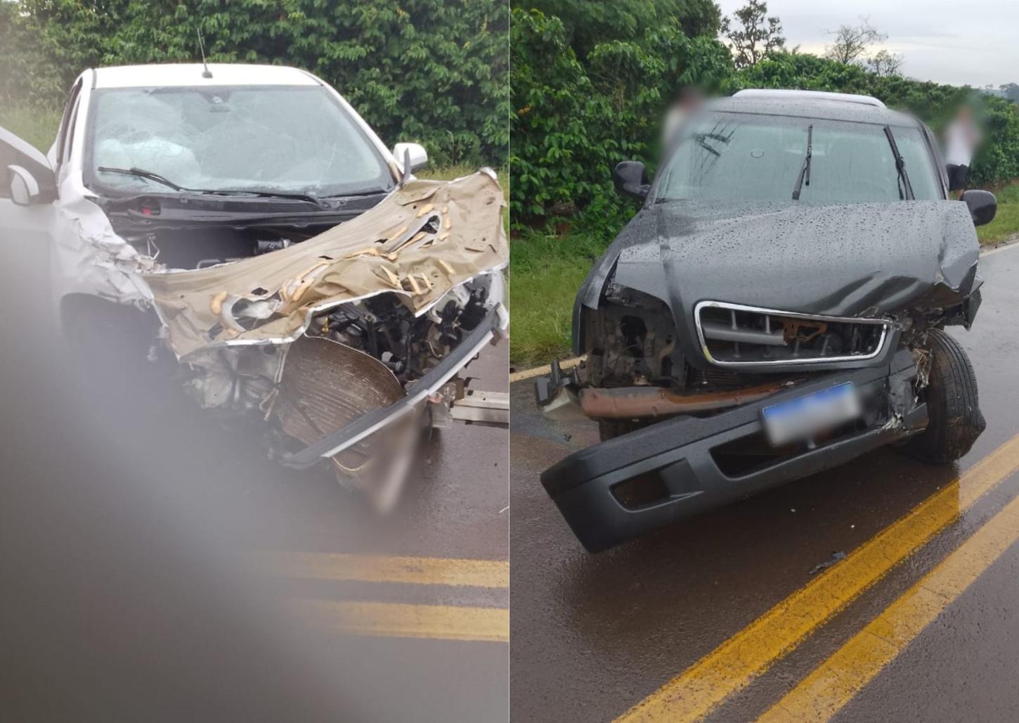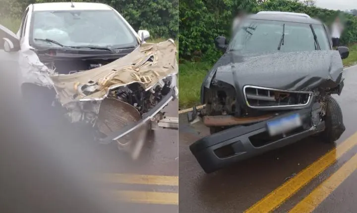Nesta sexta-feira, 18, uma caminhonete S-10 e um carro colidiram frontalmente. A batida aconteceu em um trecho de curva.