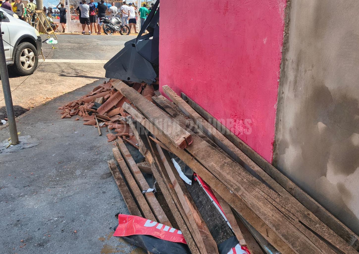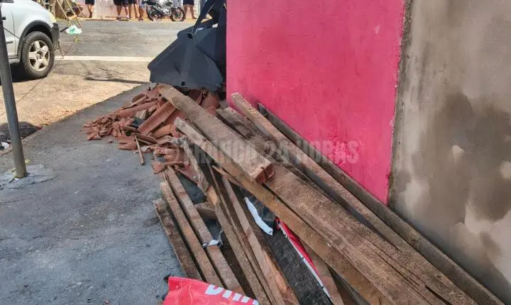 Segundo testemunhas, ninguém ficou ferido. Populares fizeram um mutirão e colocaram os destroços do telhado e da estrutura de madeira na calçada do estabelecimento comercial.