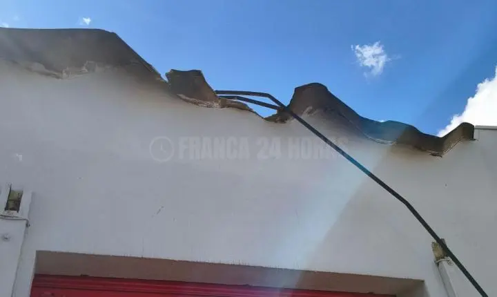 Na tarde deste sábado, 31, parte do detalhado externo, quer fica na fachada de um bar, desabou sobre a calçada, no Jardim Paulistano, na zona leste de Franca.