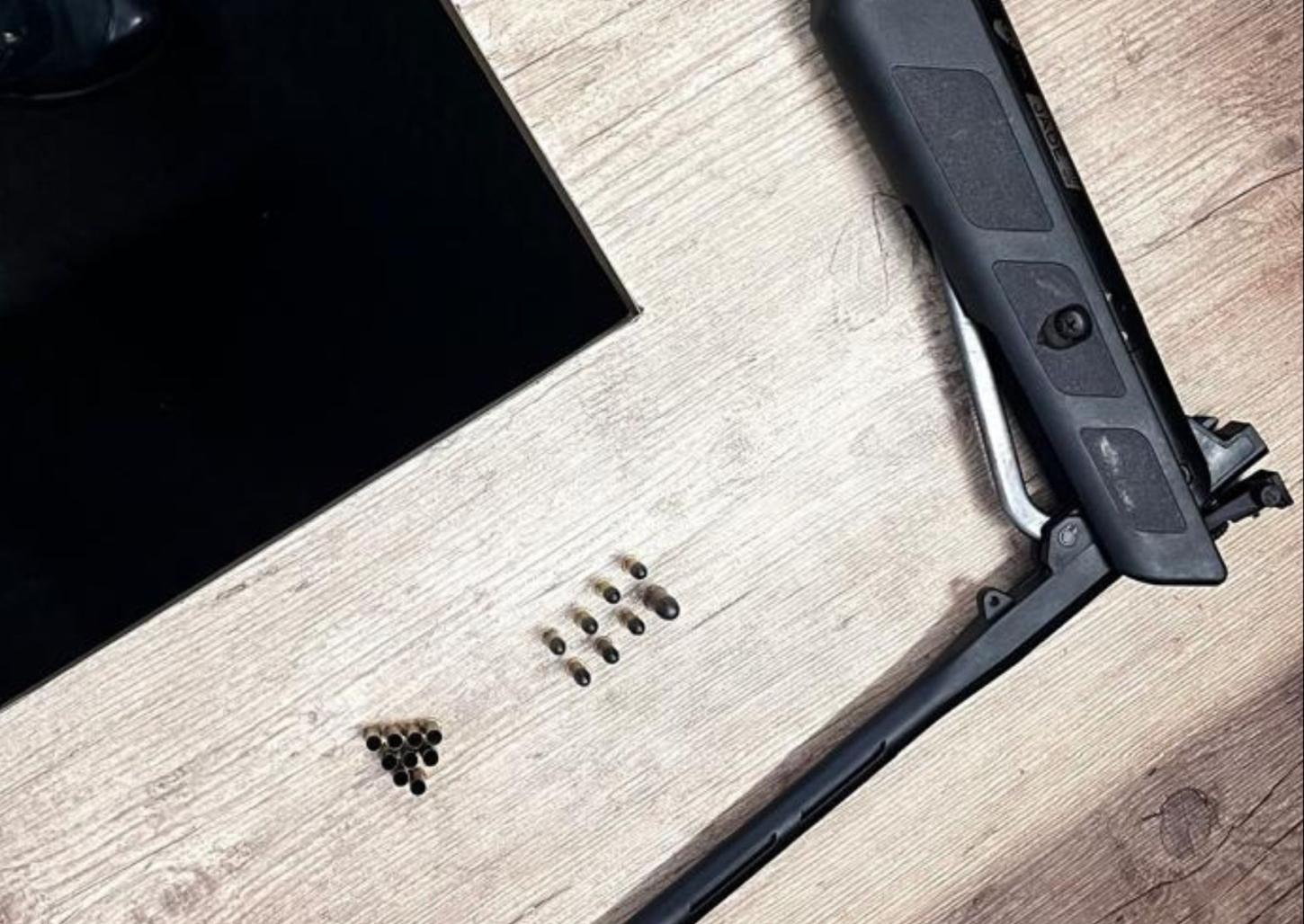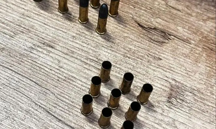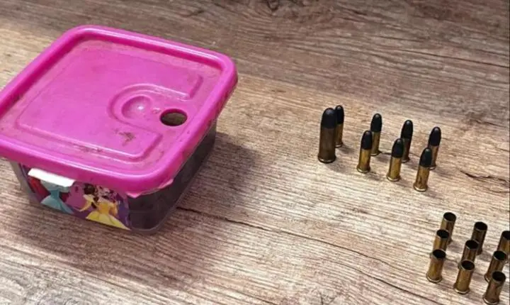 Em um pote plástico foram localizados mais seis cartuchos intactos calibre 22, nove cartuchos deflagrados calibre 22 e um cartucho intacto calibre 32.