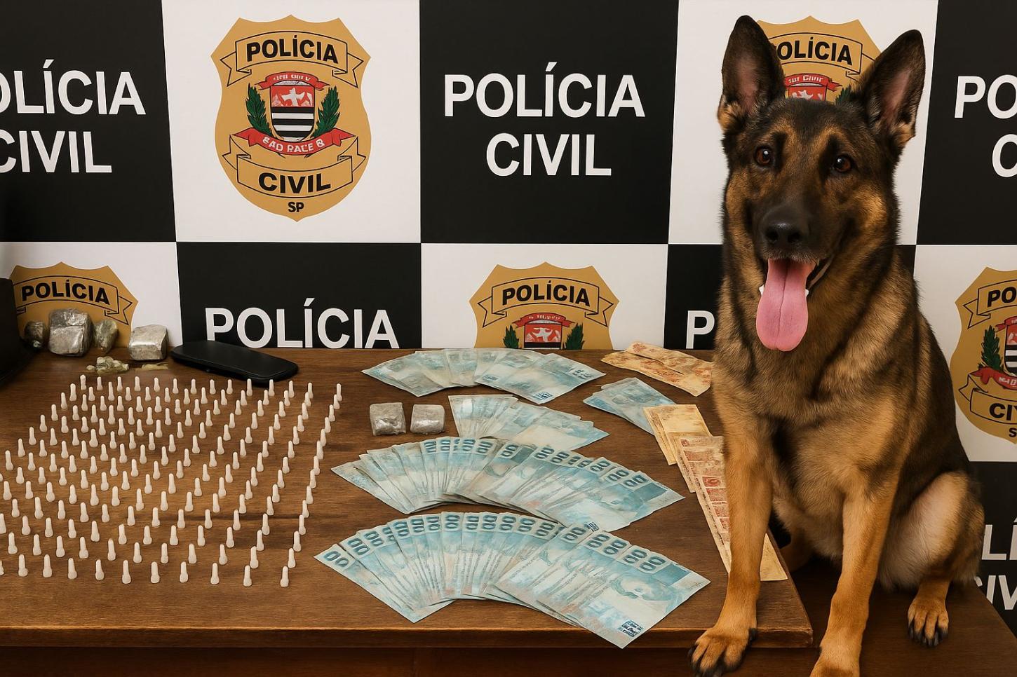 Em outra diligência realizada na cidade de Miguelópolis, uma equipe do Baep (Batalhão de Ações Especiais de Polícia), formada pelos cabos Júlio e Alessandro, com o auxílio do cão farejador K9 Glock, localizou 165 gramas de maconha em uma área de mata próxima ao local da operação. A droga encontrada pela equipe do Baep foi encaminhada à Polícia Civil para investigação.