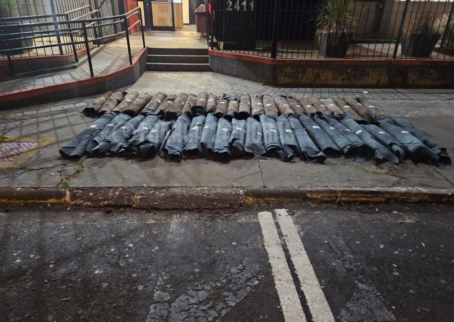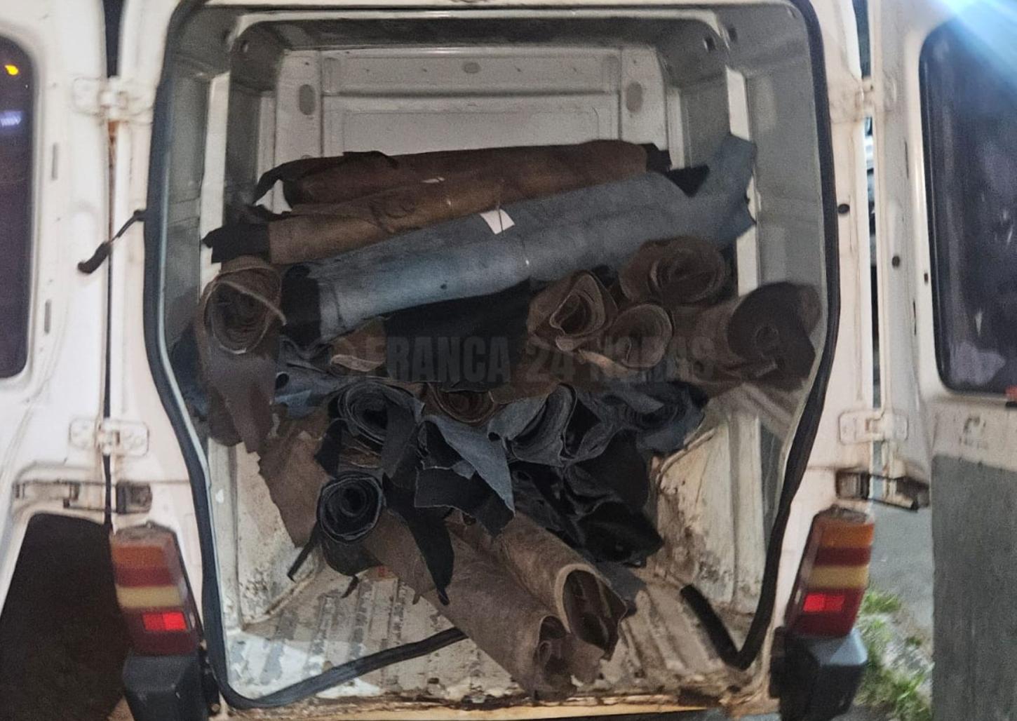 Os militares realizaram um breve acompanhamento e a abordagem foi feita na rua Adolfo Bezerra de Menezes, no Jardim Conceição Leite. Durante a ocorrência, foi identificado o condutor e nada de ilícito foi encontrado com ele, mas em busca veicular, os policiais constataram que o veículo estava carregado com diversos rolos de couro.